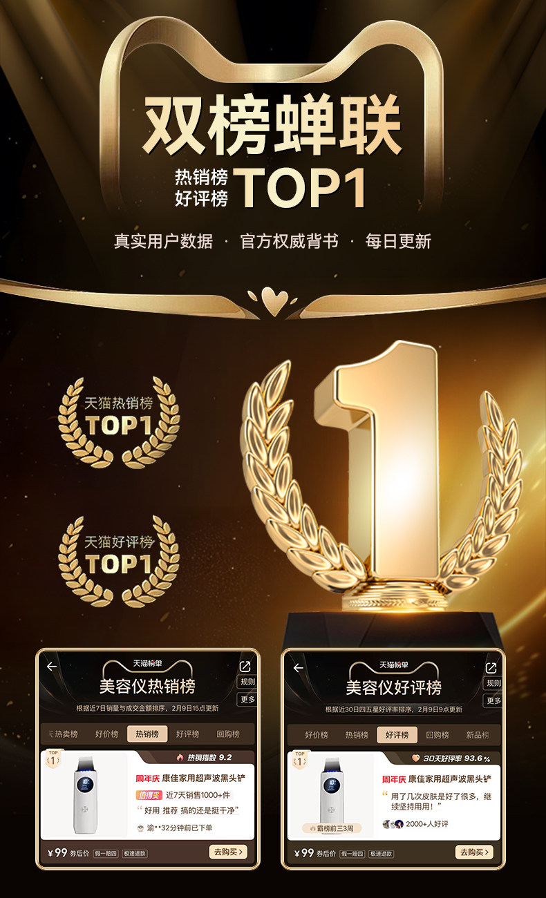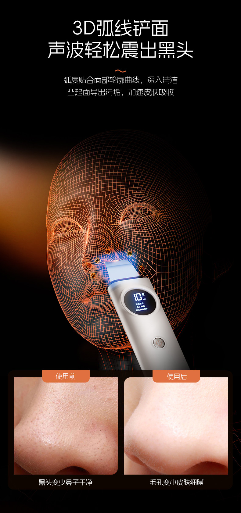 康佳美容仪器家用超声波黑头铲去吸黑头粉刺提拉紧致脸部毛孔清洁