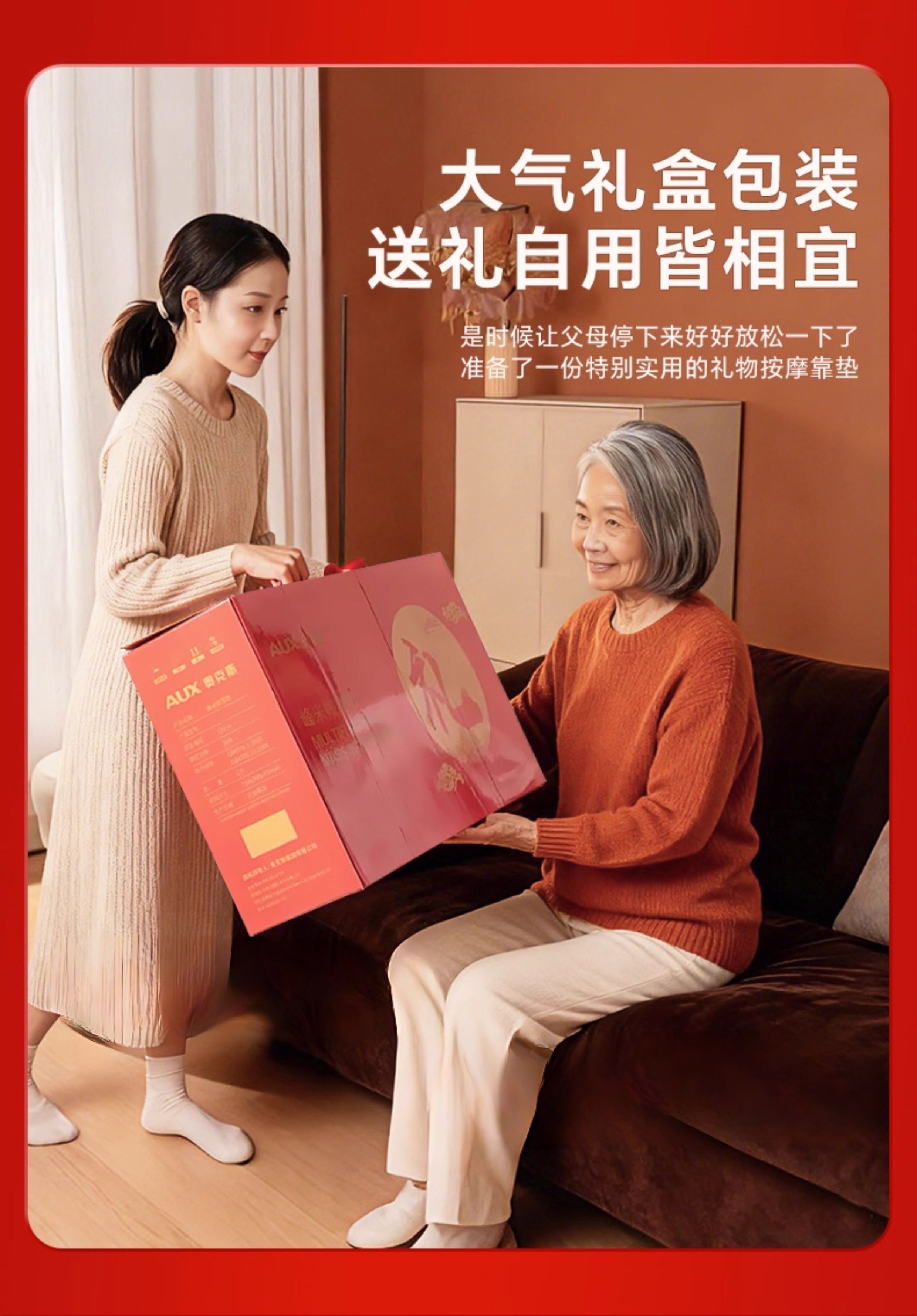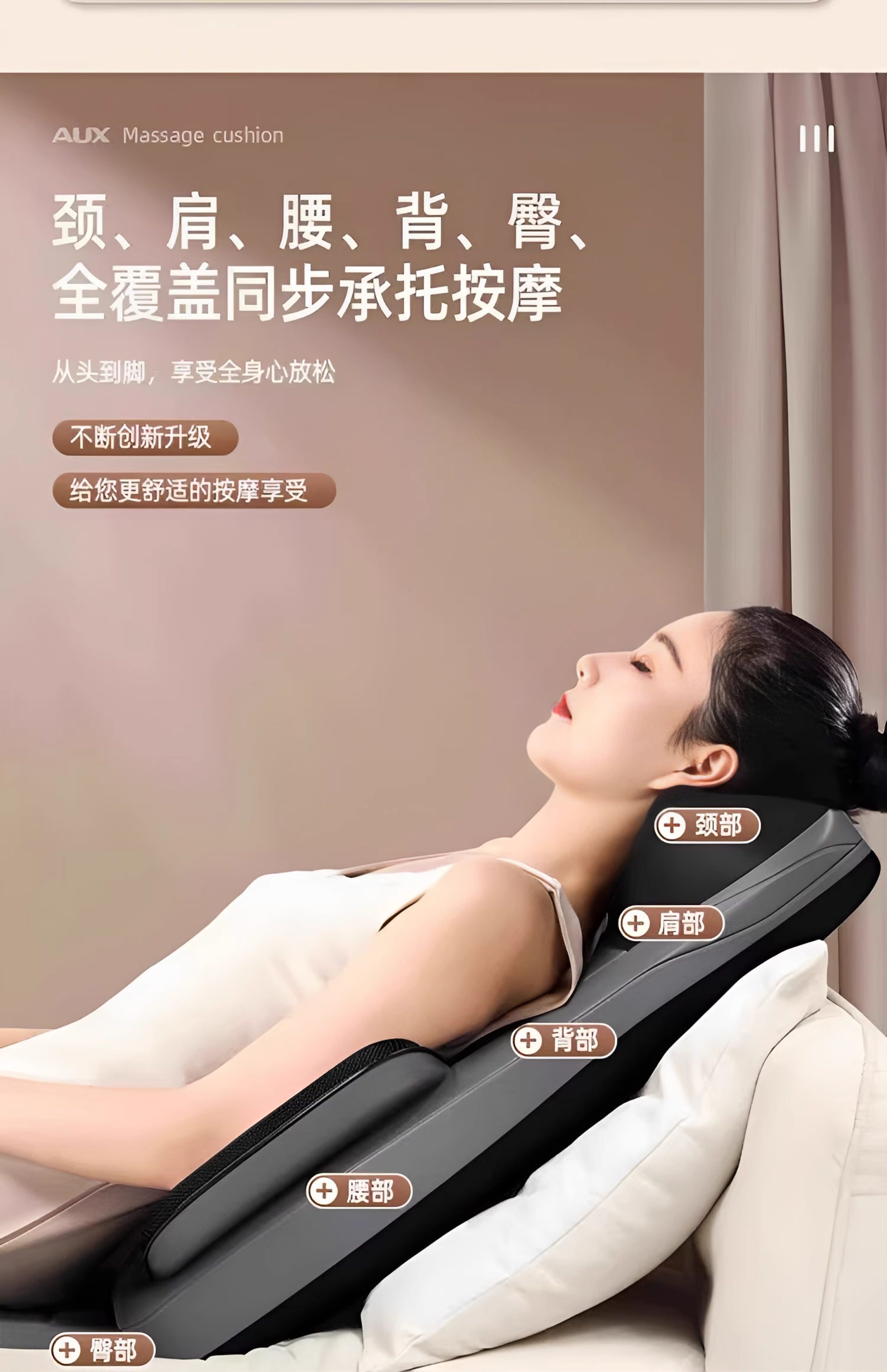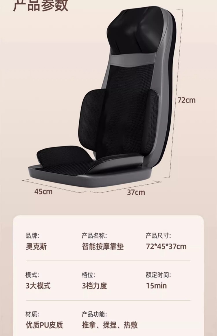 奥克斯全身多功能靠垫按摩器背部腰部颈椎全自动揉捏按摩仪礼物