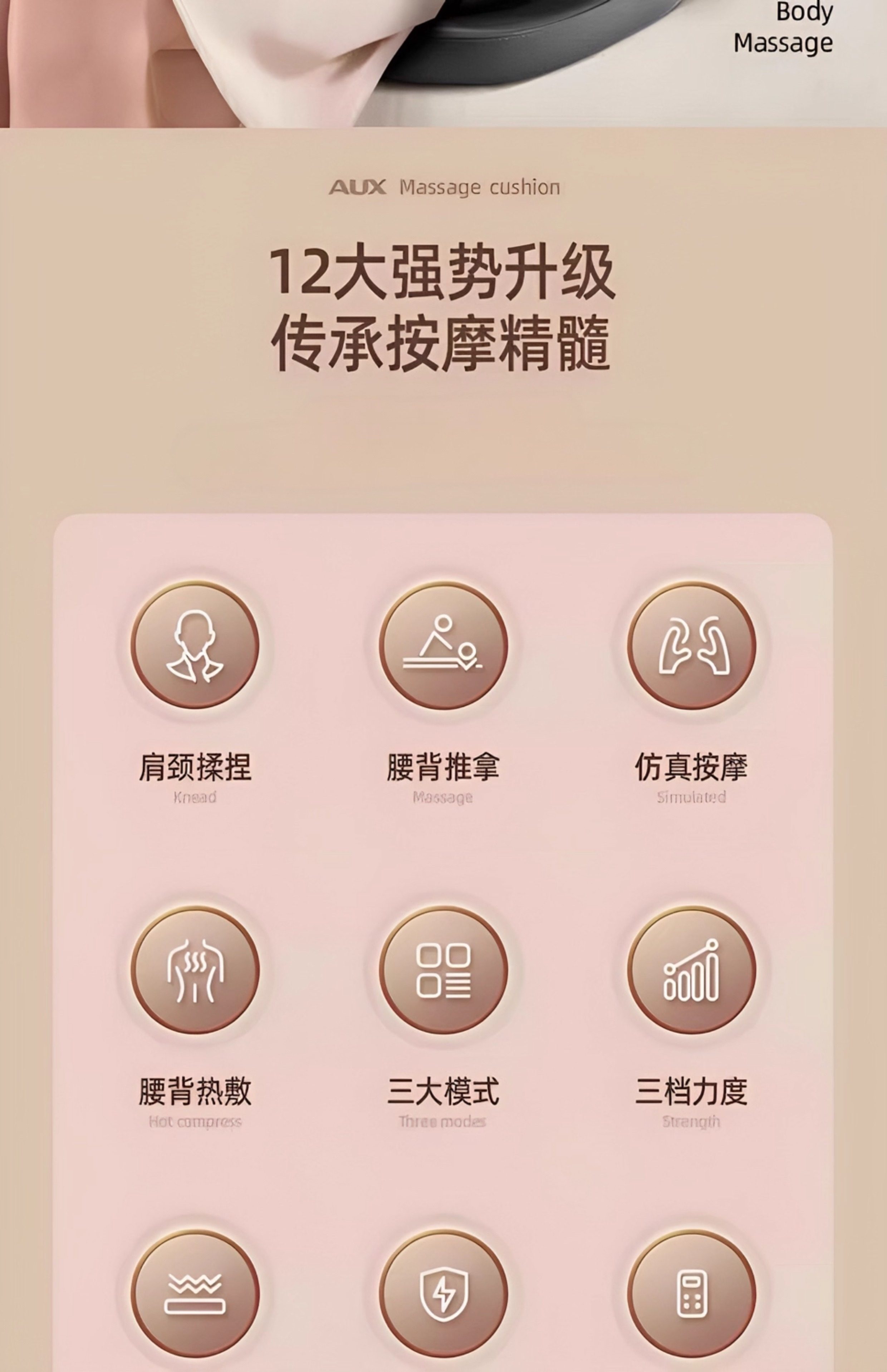 灰色高配款【颈部腰背四位一体按摩+加大按摩头+3档力度+3档模式】.