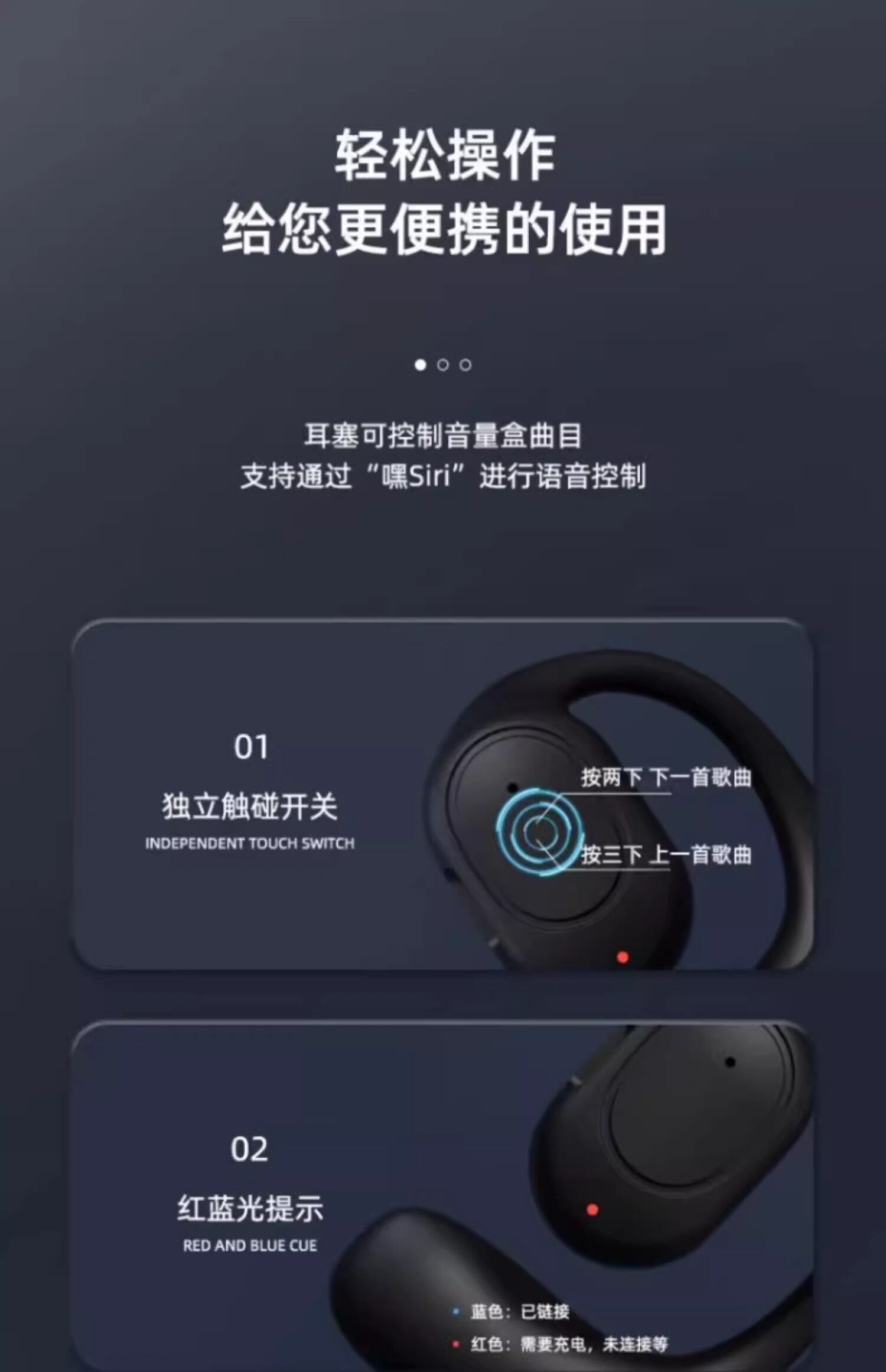 开放式不入耳空气传导无线蓝牙耳机2024新款长续航手机通用
