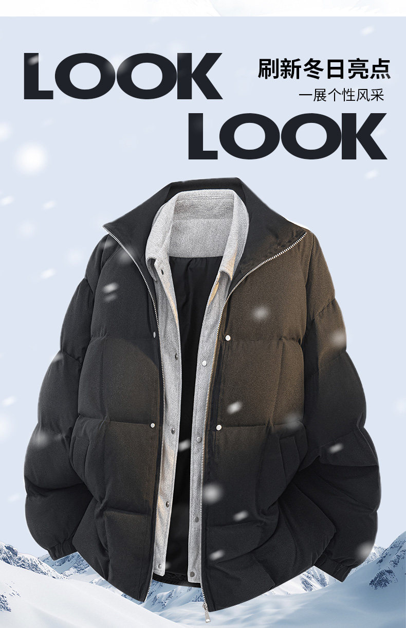 WASSUP LINE潮牌冬季假两件羽绒服套装男款90%白鸭绒保暖羽绒裤子