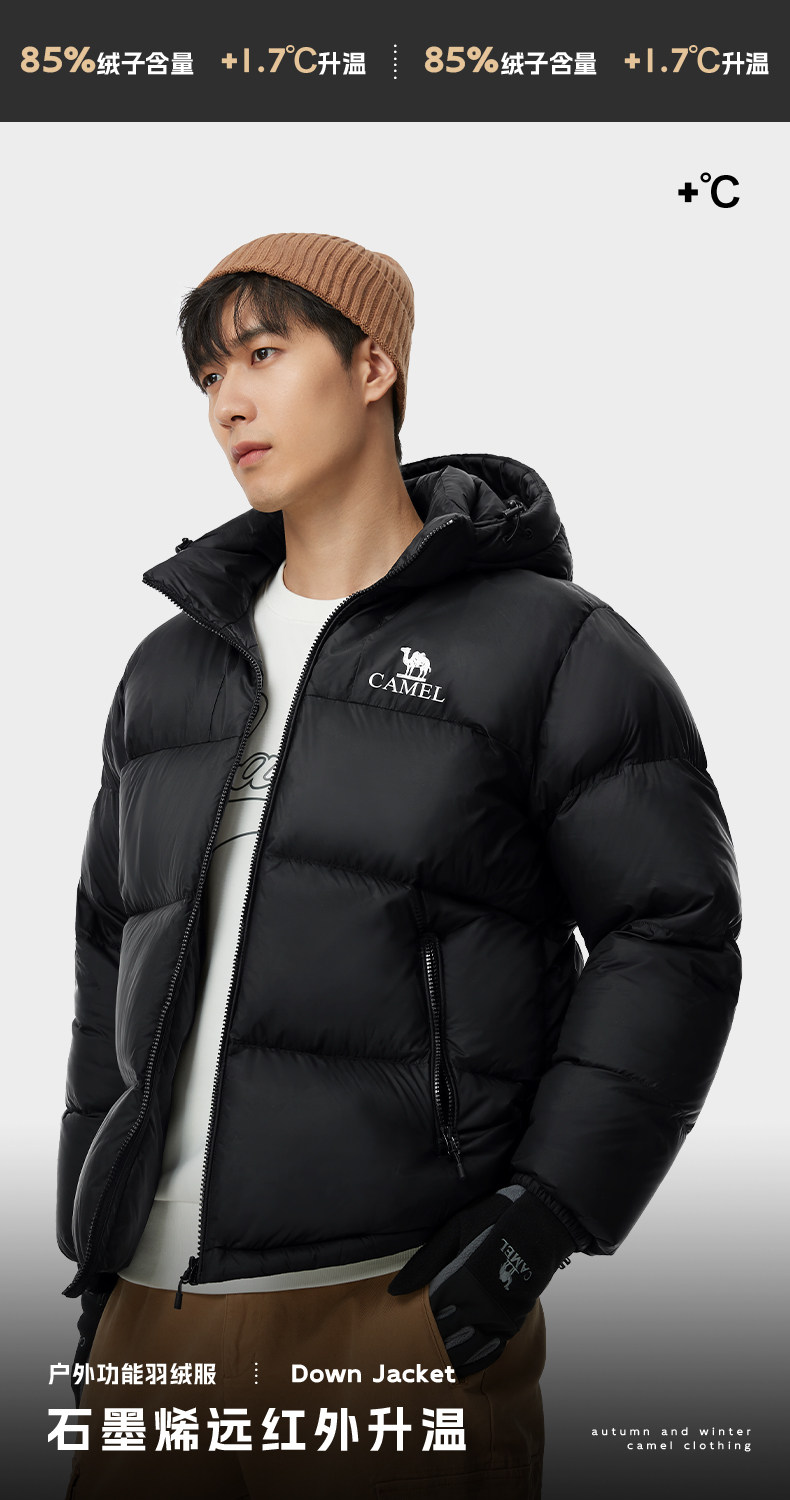 骆驼女装短款羽绒服2025冬季新款情侣男女加厚宽松连帽面包羽绒服