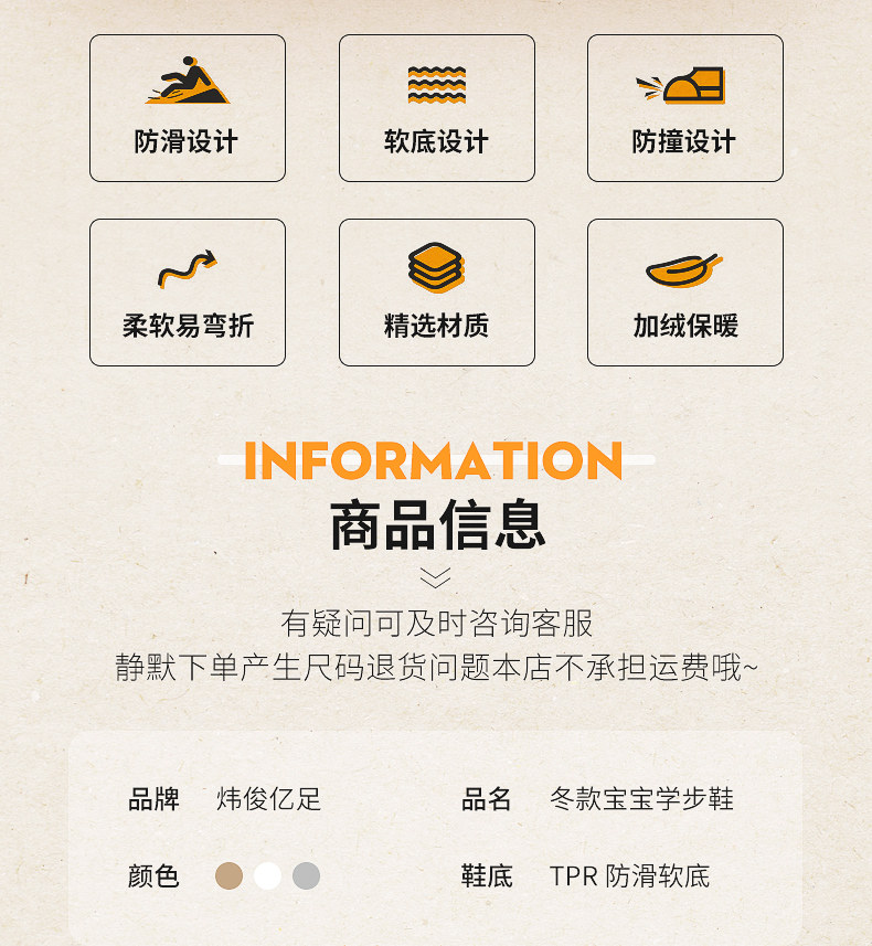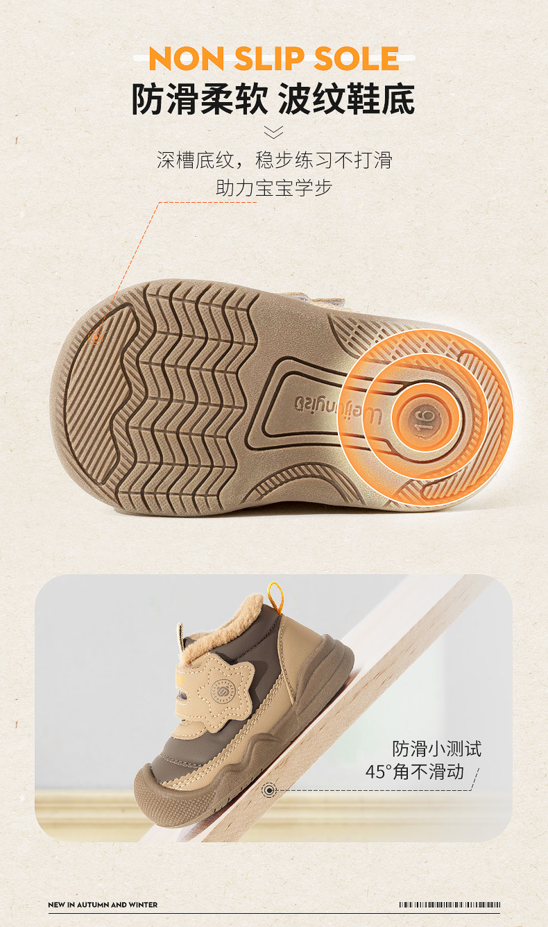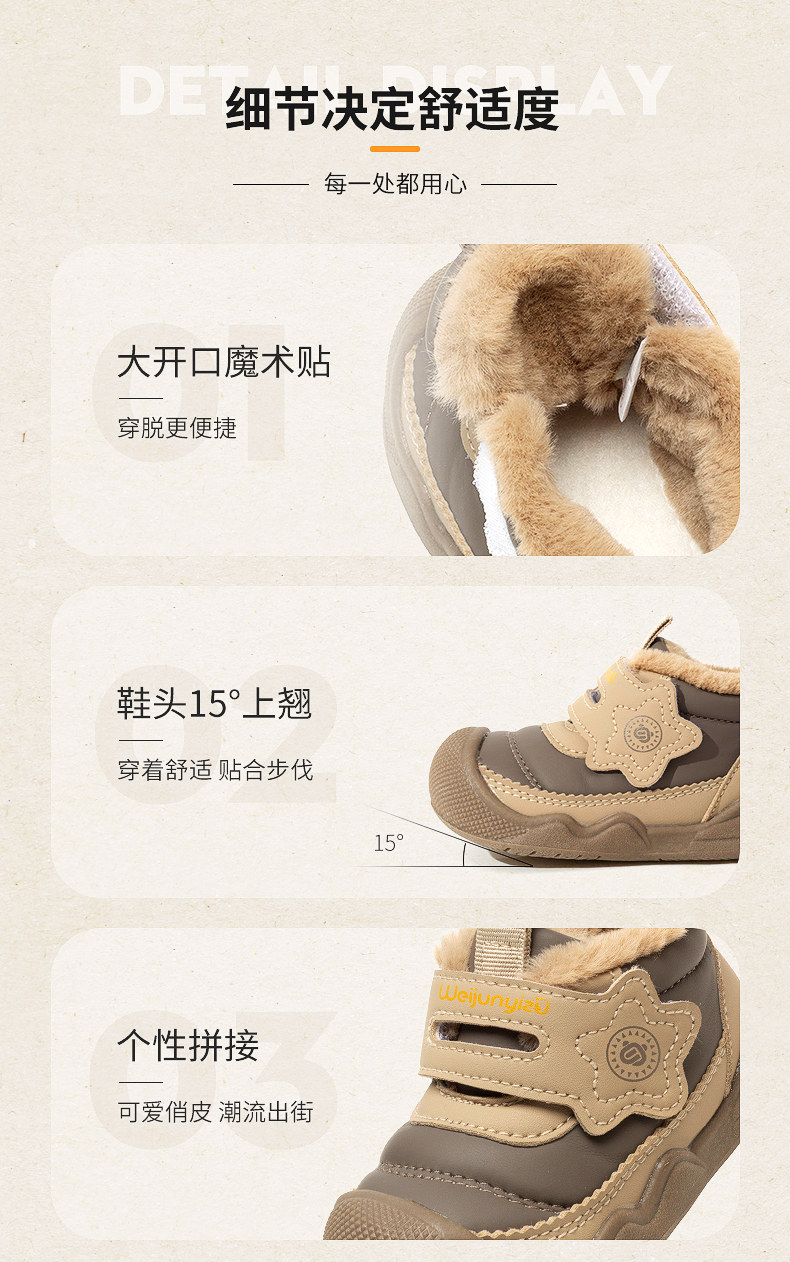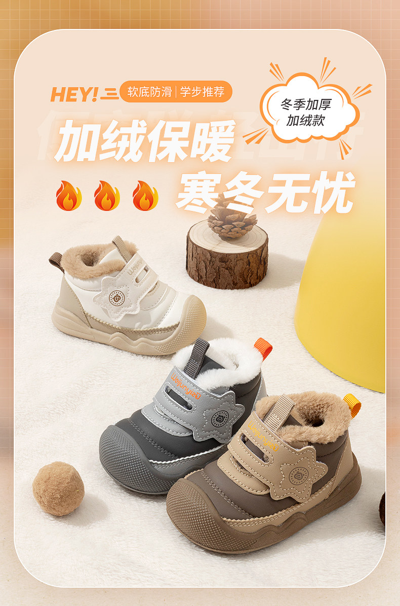炜俊亿足男宝宝棉鞋冬季加绒学步鞋婴儿鞋子宝宝雪地靴儿童鞋女童